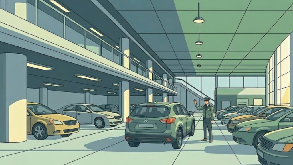 鍵を受け取って駐車場へ向かった後、すぐに出発してはいけません。