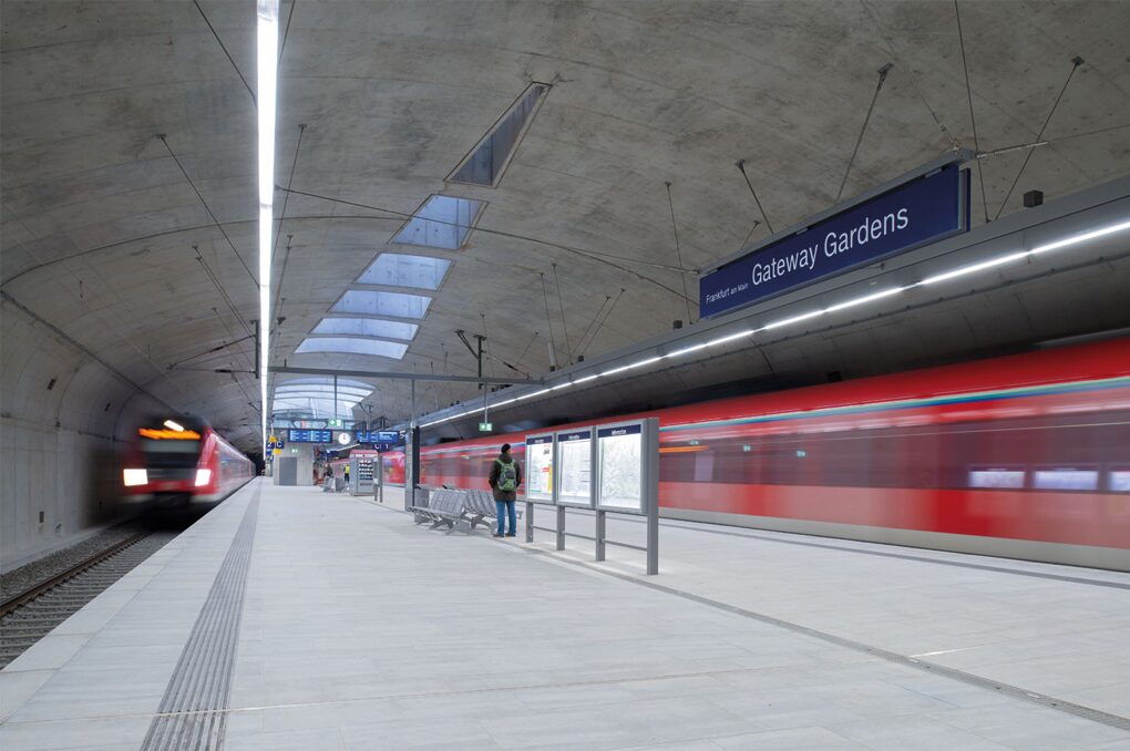 T1の地域鉄道駅(Regionalbahnhof)へ → S8/S9で1駅(約2分) → Gateway Gardens駅の目の前です。