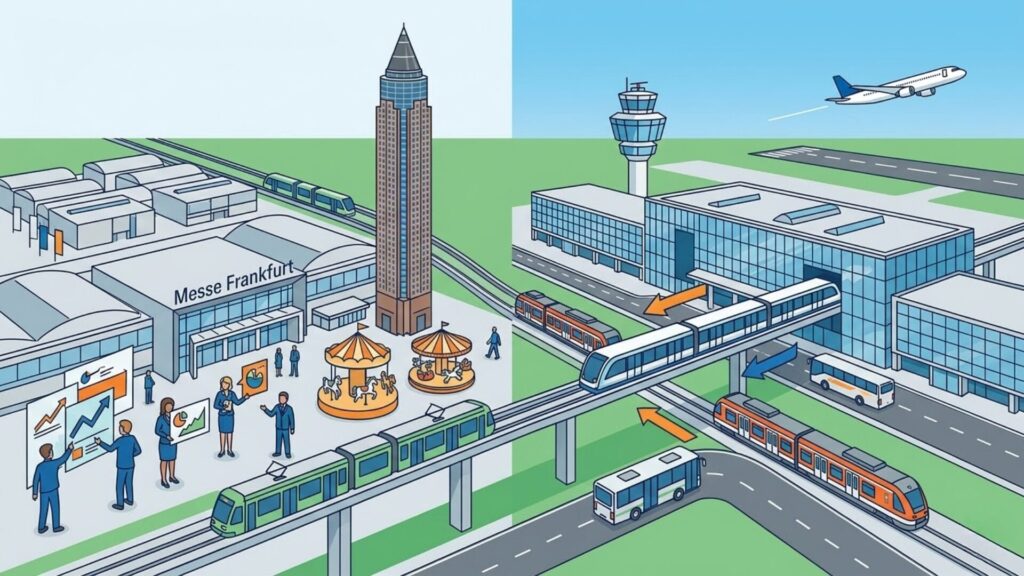 メッセの入場チケットにはRMV(ライン=マイン交通連合)の公共交通乗車券が含まれる場合もあり、会場までのアクセスがスムーズに設計されています。
