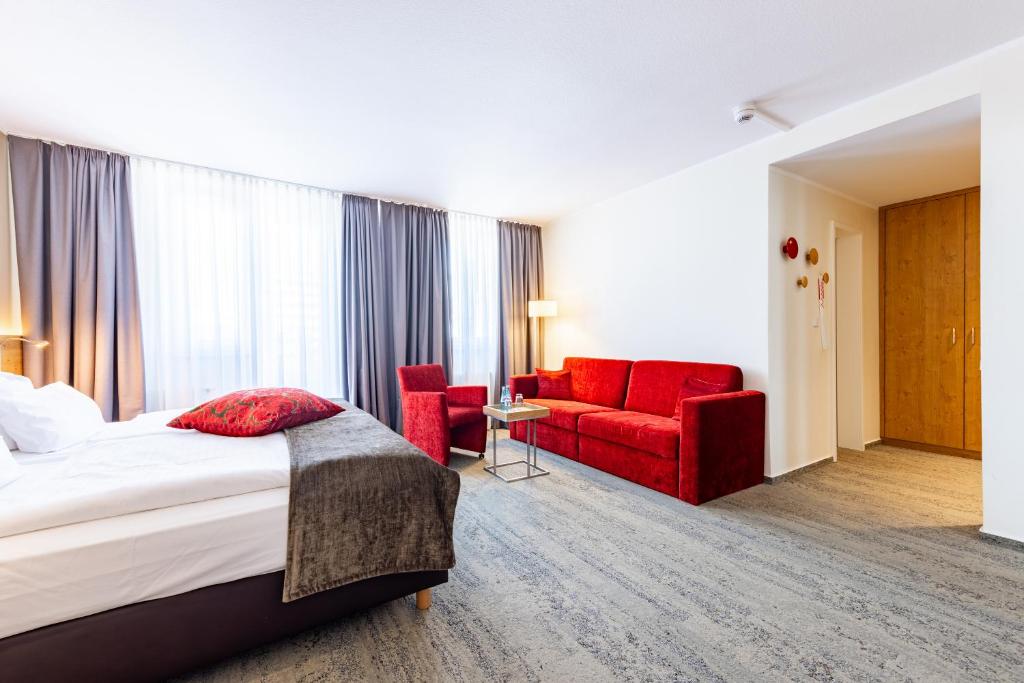 究極の「徒歩0分」圏 メッセ会場(Festhalle)の道路を挟んだ真向かいにそびえ立ちます。アクセスが良いというレベルではなく、「目の前」です。忘れ物をしても取りに帰れる距離感。急なオンライン会議が入っても、ブースから部屋に走って戻れる機動力は、何物にも代えがたい価値です。