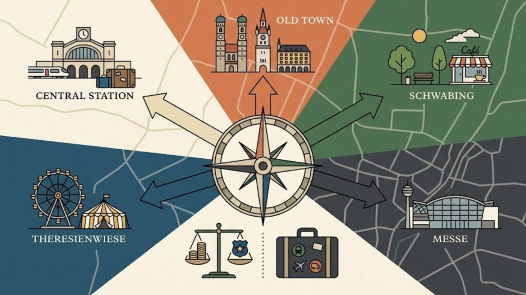 | 移動効率 | 高:ICE(高速列車)や空港へのアクセスが最短。重い荷物を持っての移動距離を最小限に抑えられる。 | 低:駅からトラムや地下鉄(U-Bahn)での乗り継ぎが必要になる場合が多い。 |