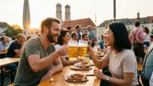 現地では、よく冷えたヴァイスビアと、焼きたてのプレッツェルの香りがあなたを待っています。