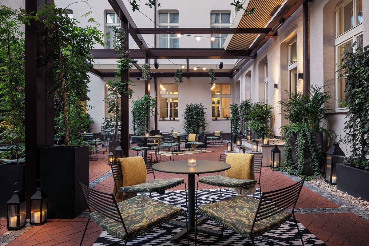 2002年開業、チェコ出身の有名建築家エヴァ・ジリチュナーが手掛けたデザインホテル(約109室)。館内には自家製パンが自慢のベーカリー、中庭、屋上ジム&サウナも。朝食は11:30までと、朝寝坊したい日も安心です。機能美あふれる客室とスムーズな動線で、「おしゃれ」と「使いやすさ」を両立しています。