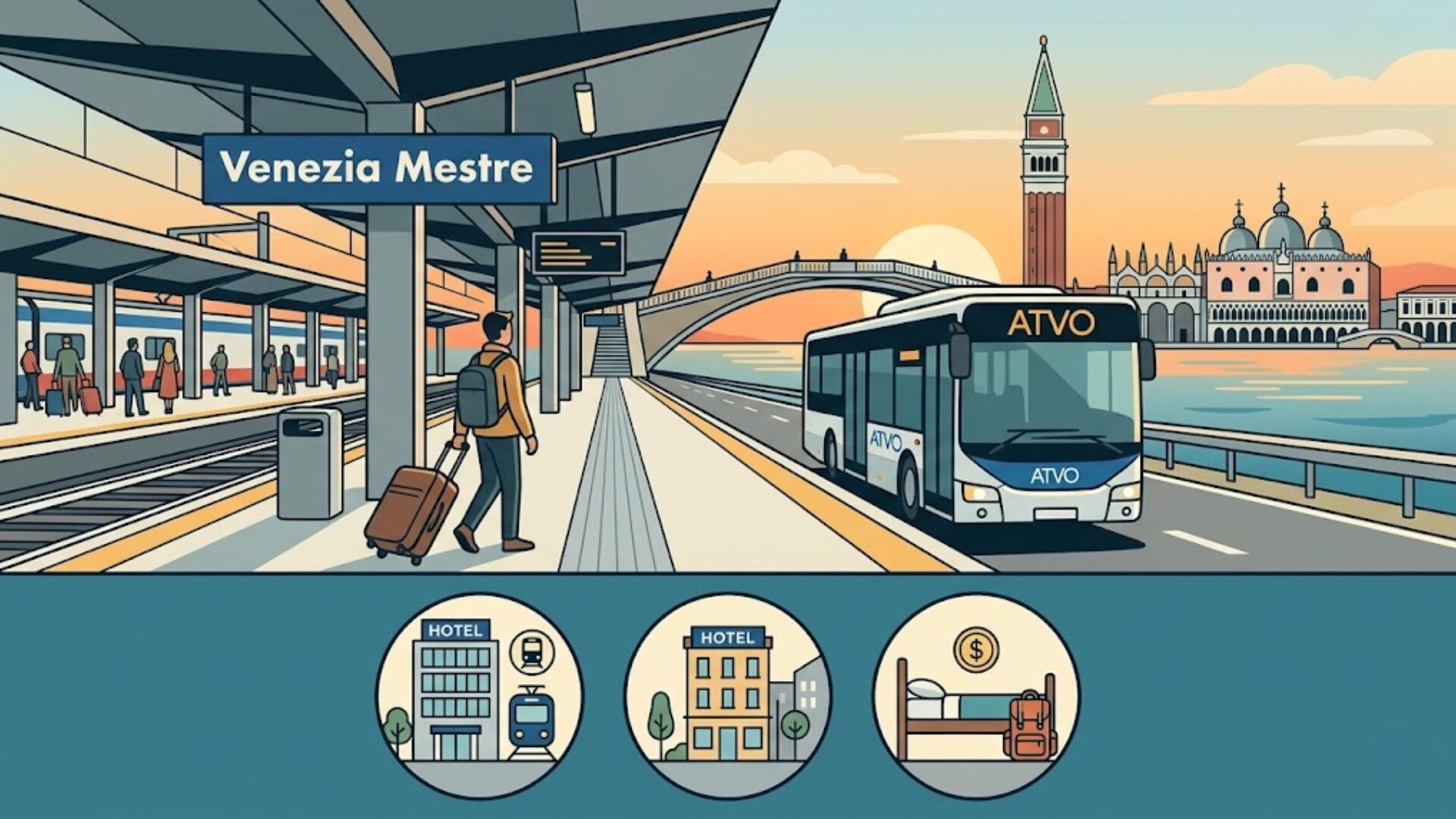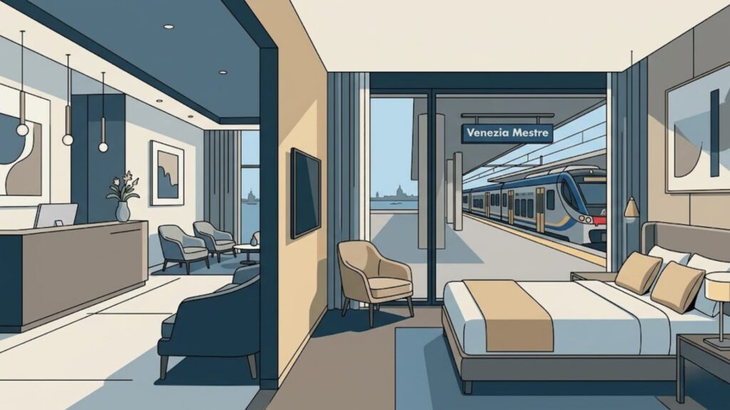 - 最寄り駅・交通:メストレ駅の真正面。本島(サンタルチア駅)へは列車で10分未満、マルコ・ポーロ空港へはATVOバスで約17分
